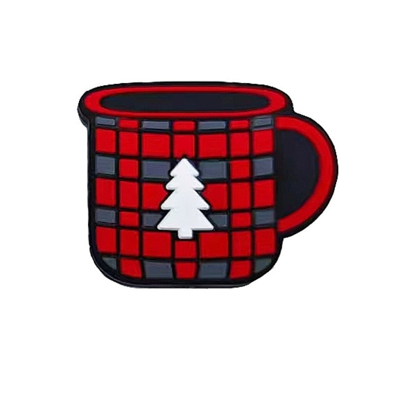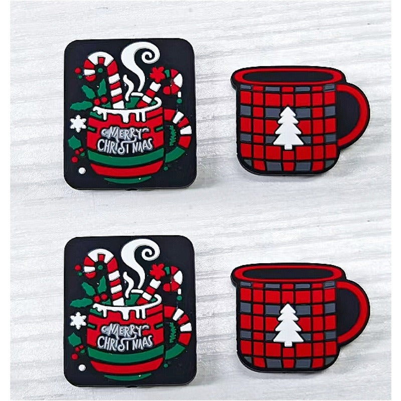 Wholesale 10pcs Christmas Cup Shape Grid Design Cup Cane Pattern Beads
