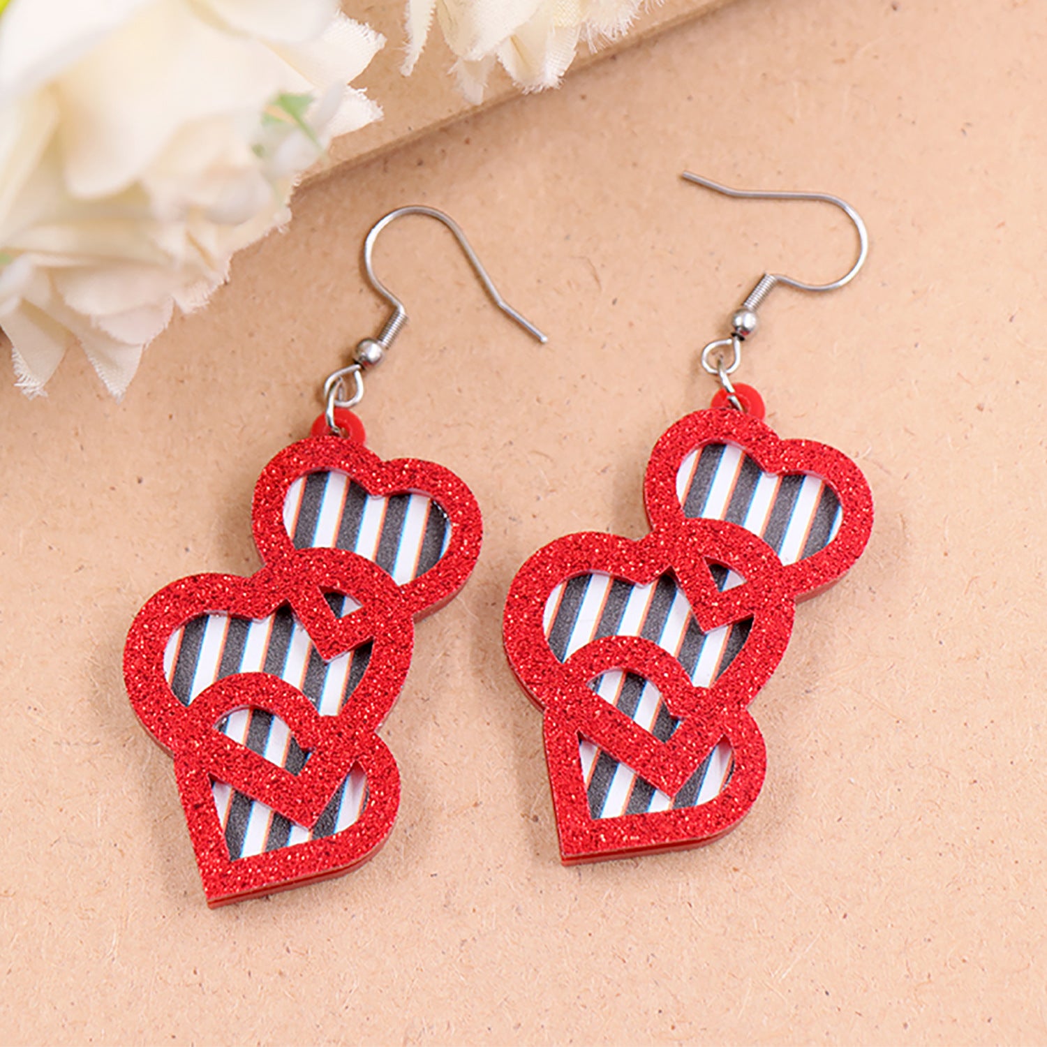 Wholesale Valentine's Day Autumn and Winter Black and White Stripe Love Acrylic Earrings