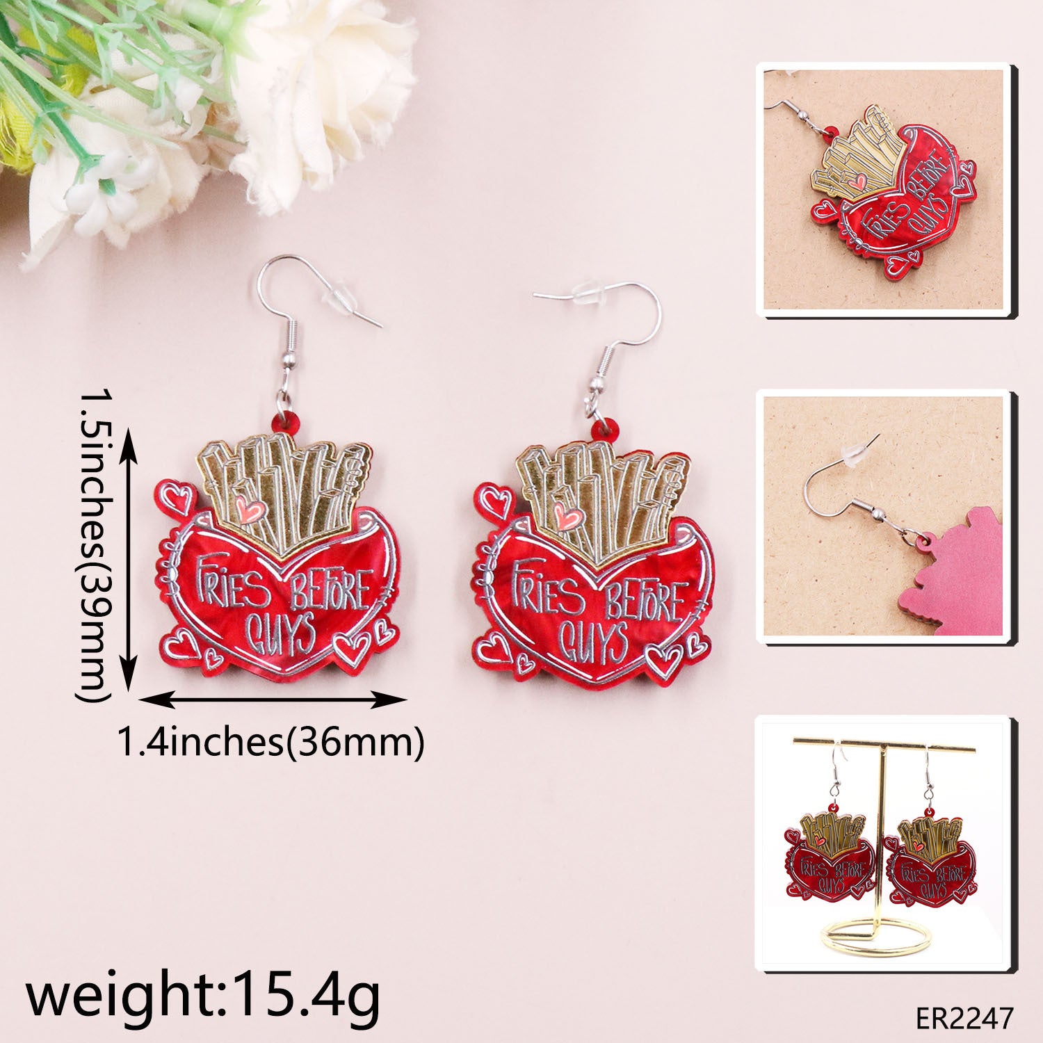 Wholesale Valentine's Day Love Chips Acrylic Earrings