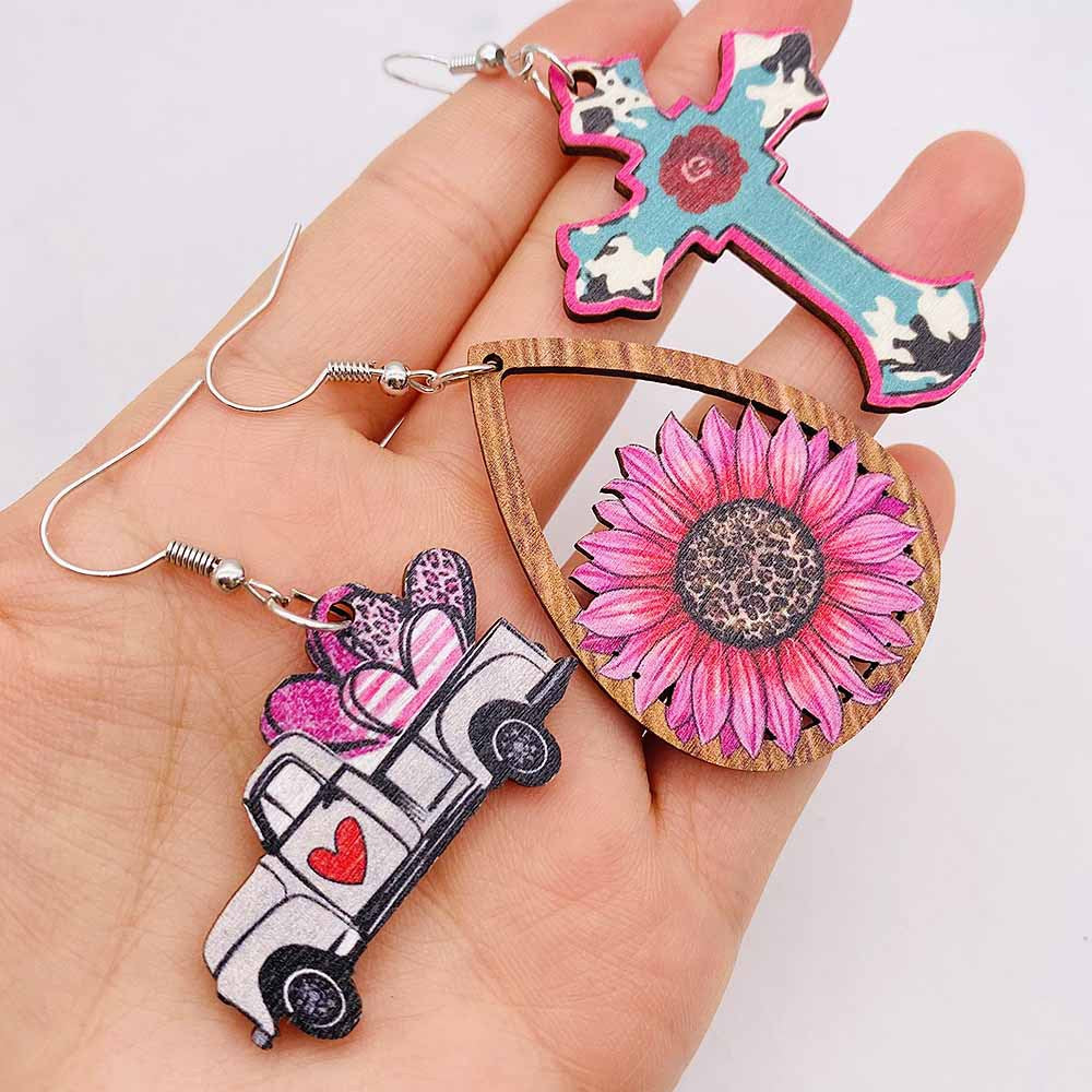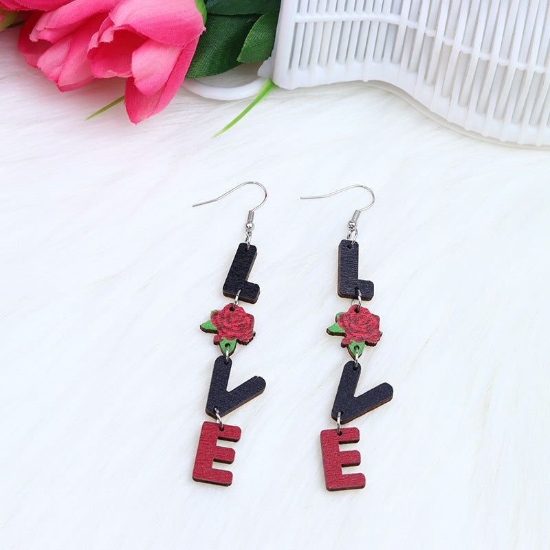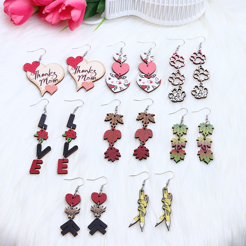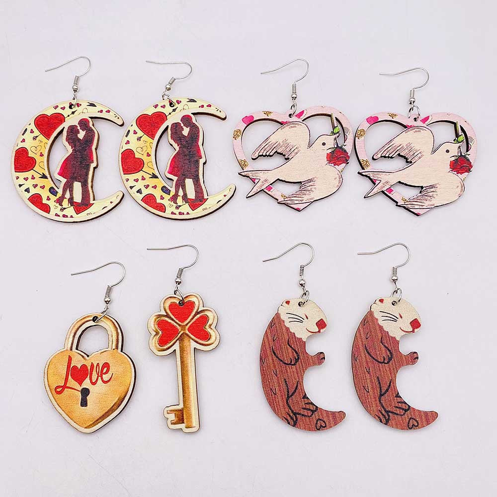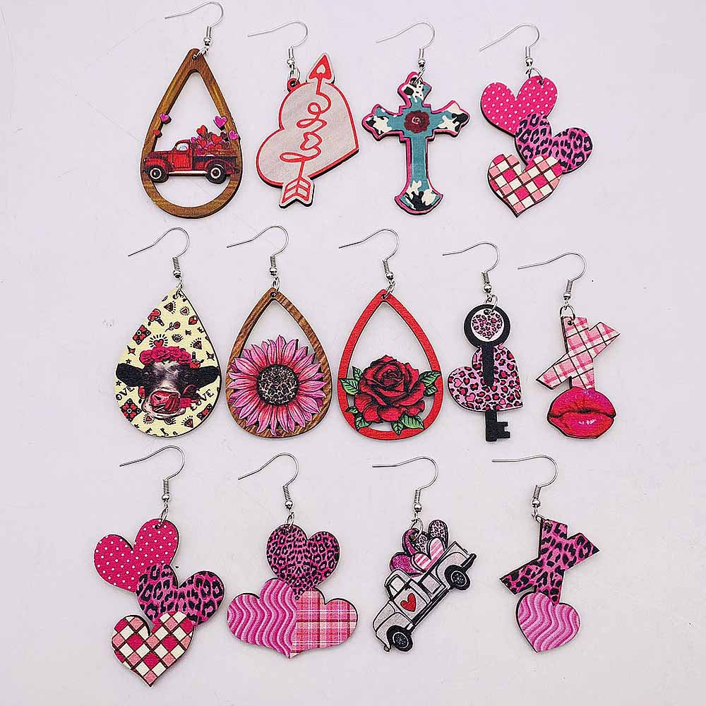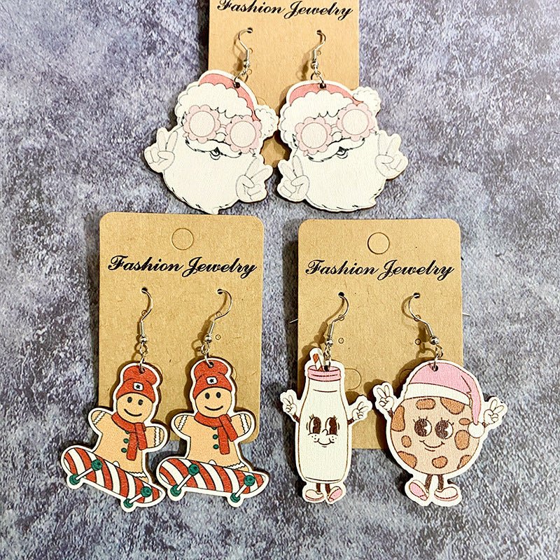 Wholesale Cartoon Valentine's Day Christmas Wood Earrings