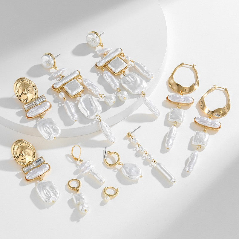 Wholesale Alloy Inlaid Baroque Pearl Earrings