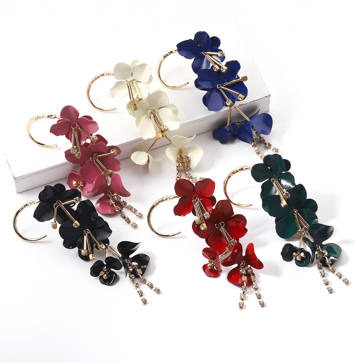Joyas al por mayor Pendientes largos de aleación de flores multicapa