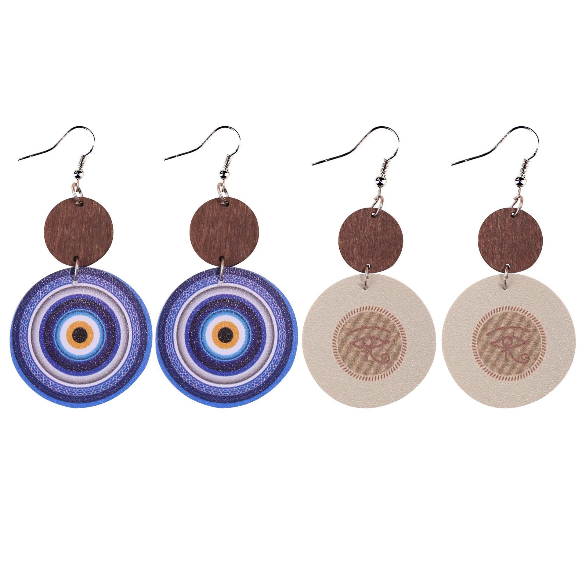Aretes De Cuero De Bloque De Madera Redondos De Ojos Azules al por mayor