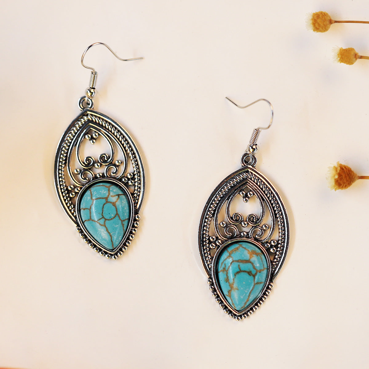 Wholesale Bohemian Ethnic Style Blue Turquoise Water Drop Earrings