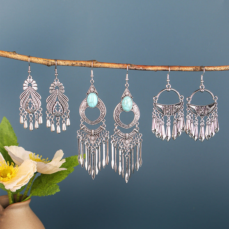 Pendientes De Aleación De Turquesa De Plata Bohemia al por mayor