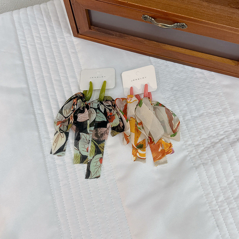 Pendientes de tela Bowknot de borde larga de estilo bohemio de estilo bohemio
