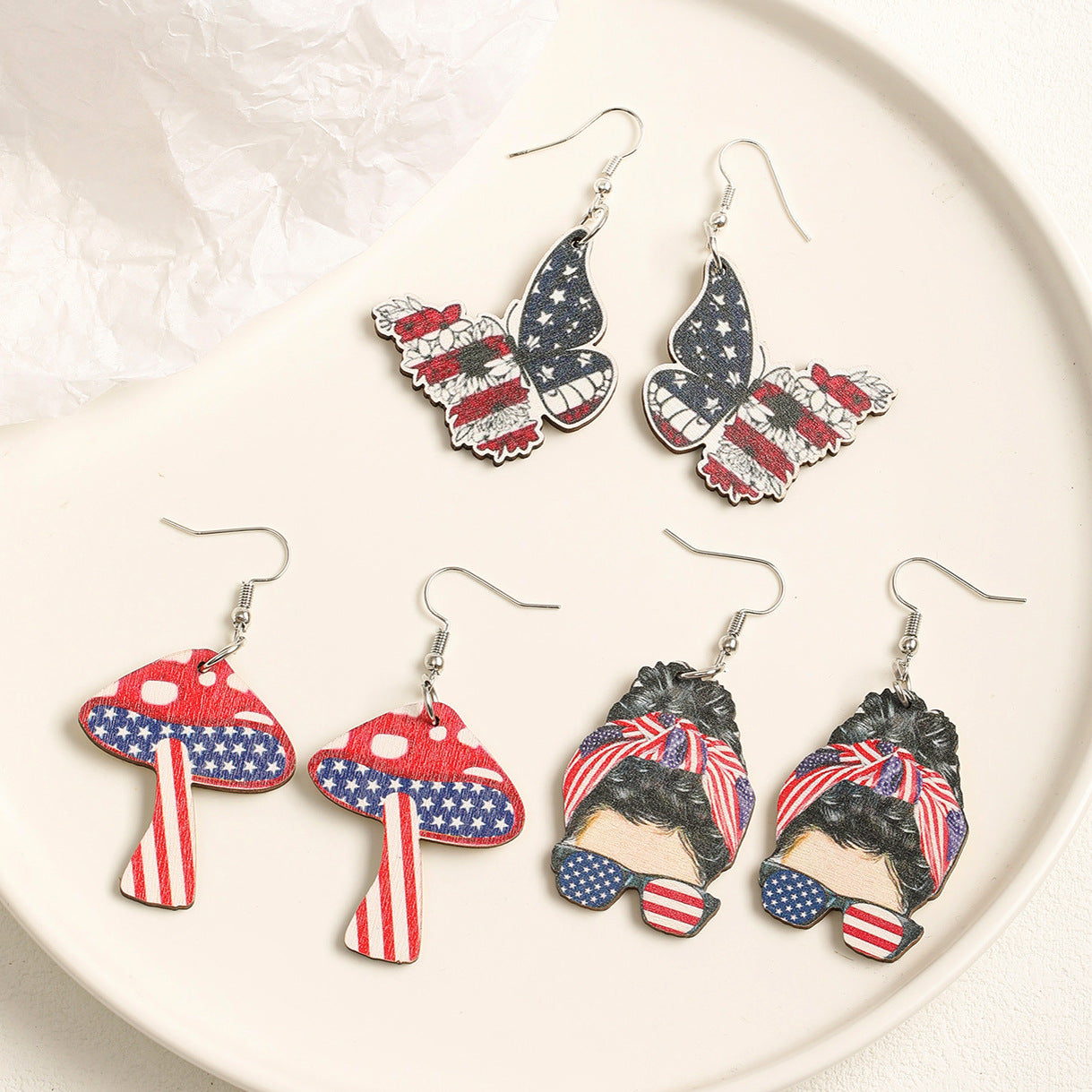 Pendientes de madera estampados de estampado de la bandera de mariposa al por mayor