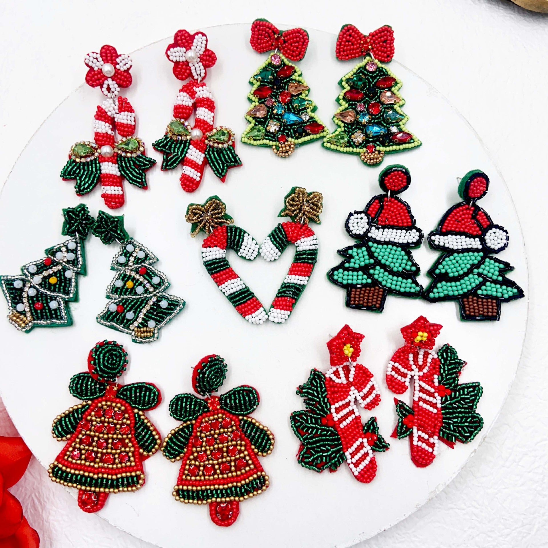 Wholesale Christmas Bells Candy Canes Sweet and Cute Rice Beads Hand-woven Earrings