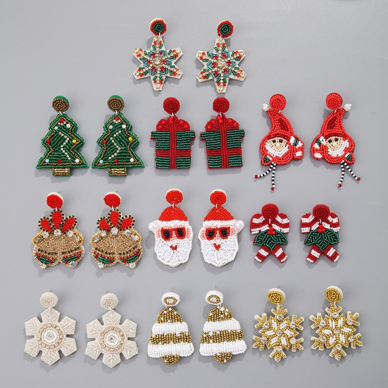 Wholesale Christmas Fabric Beads Hand Stitched Earrings