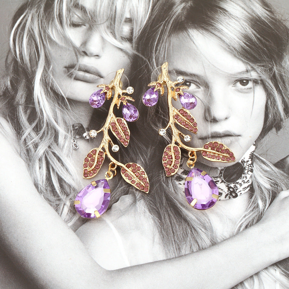 Pendientes De Aleación De Hoja De Rama De Taladro De Color al por mayor