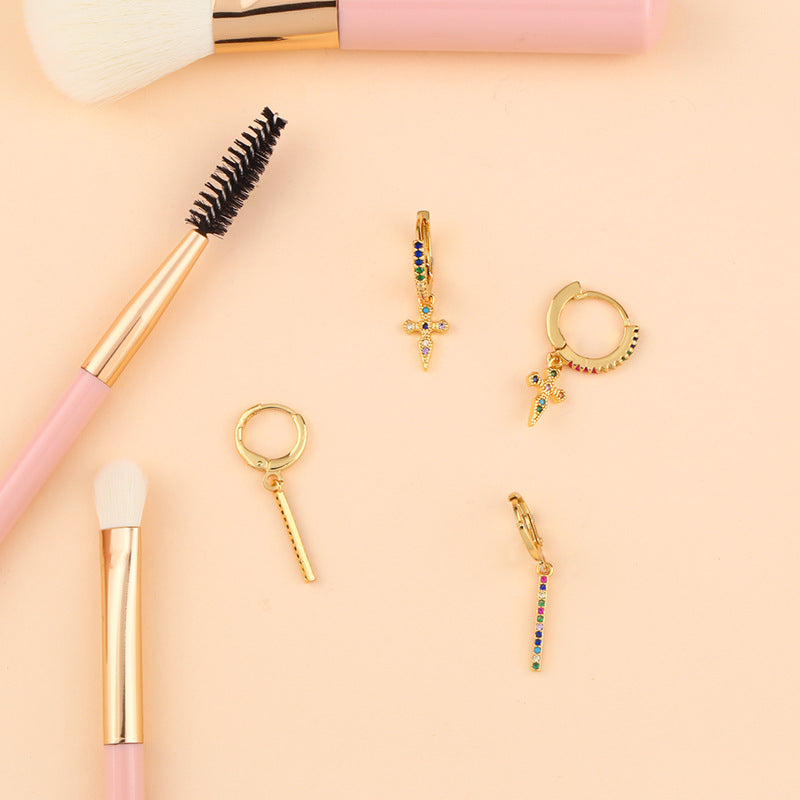 Pendientes De Cobre Con Cruz De Diamantes De Colores al por mayor