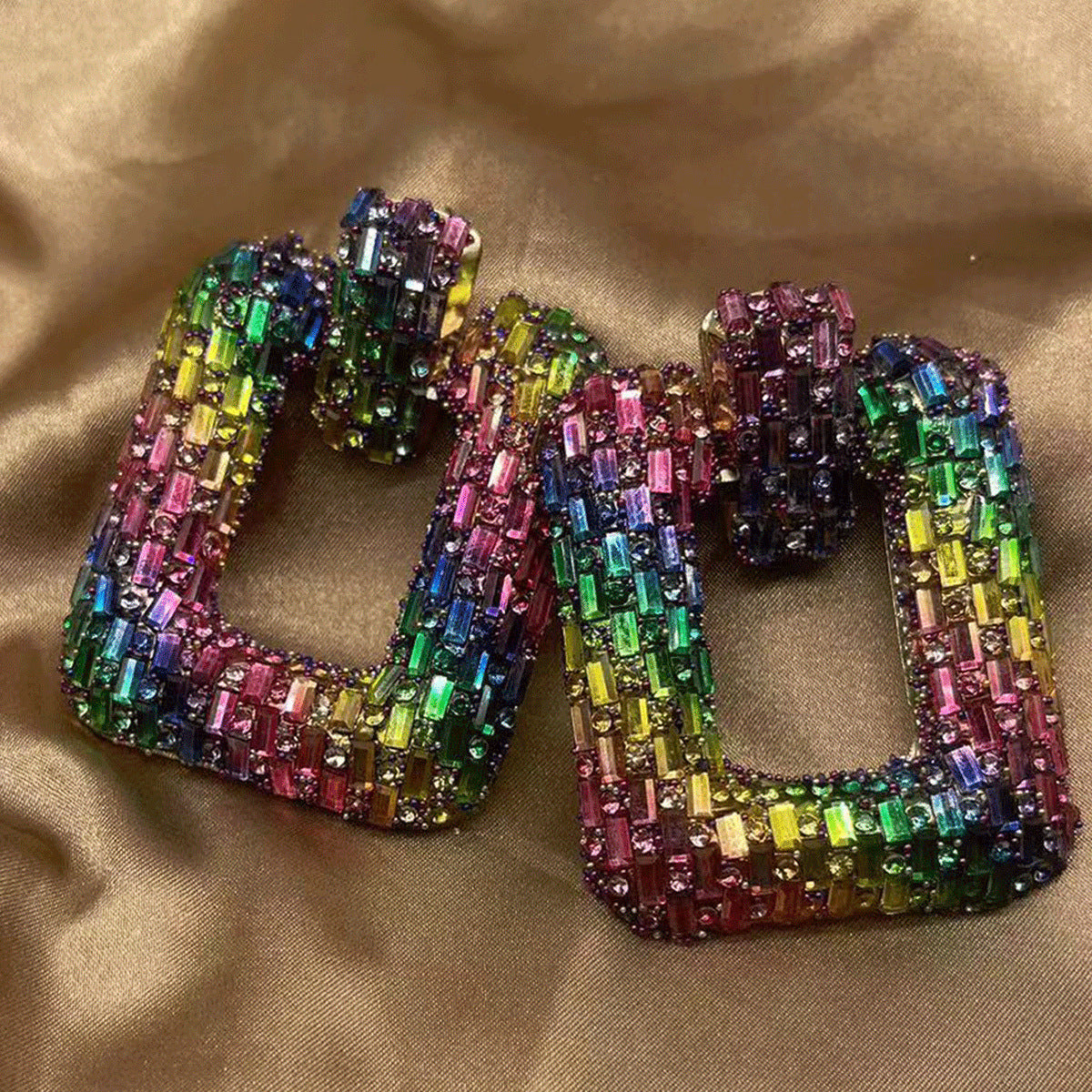 Wholesale Colored Glass Full Water Diamond Earrings