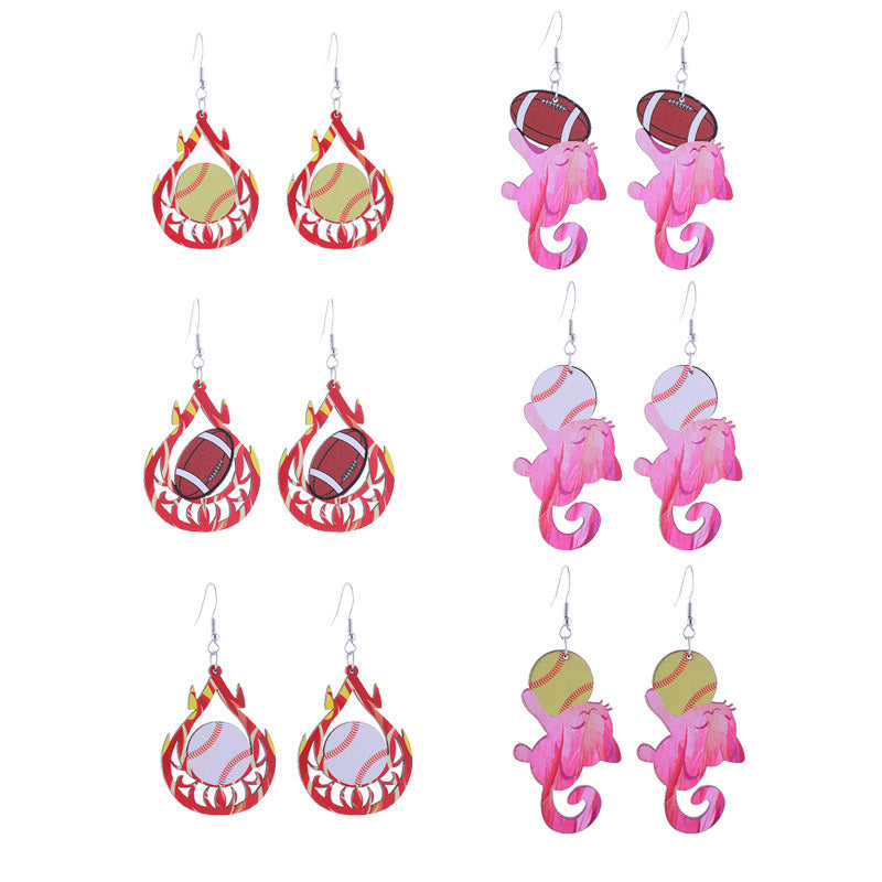 Wholesale Flame Super Rugby Baseball Sports Style Wooden Hollow Earrings
