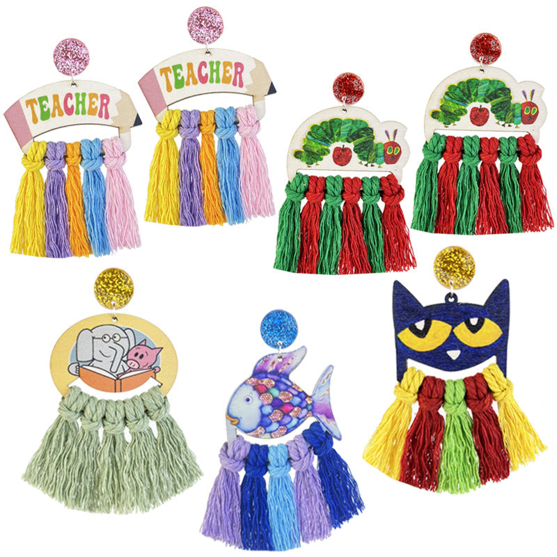 Wholesale Fun Reading Pencil Student Teacher Braided Earrings