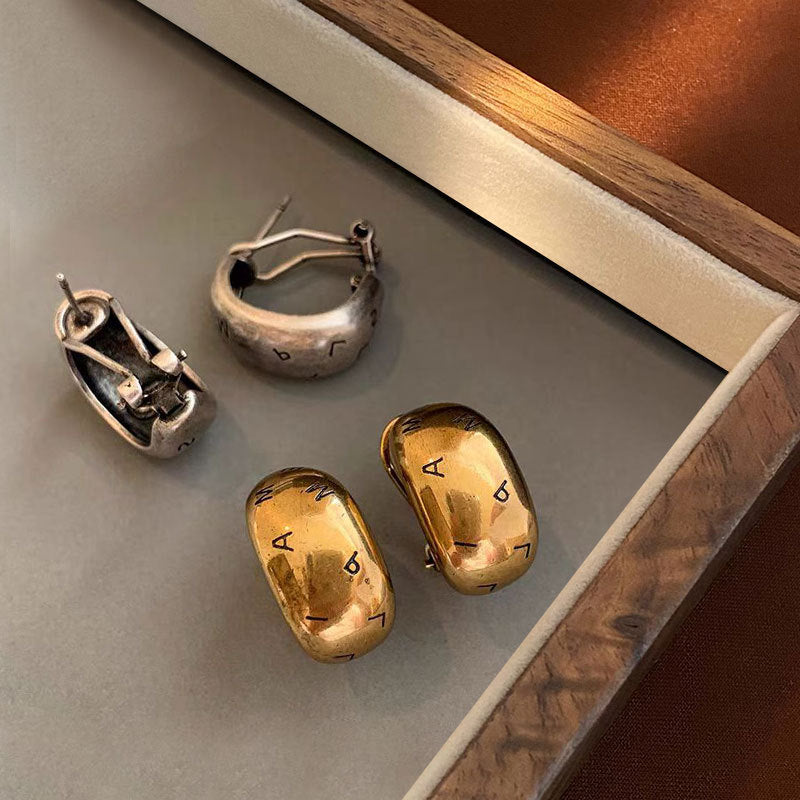 Wholesale Gold and silver retro letter Hong Kong style temperament distressed earrings