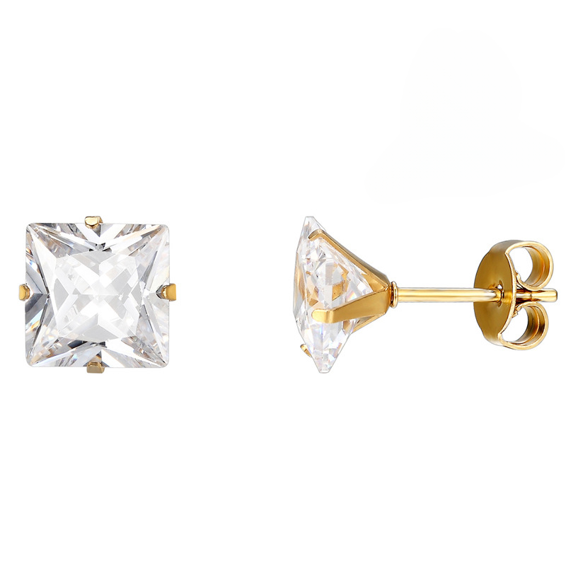 Pendientes al por mayor de acero inoxidable de diamante de flash cuadrado grande