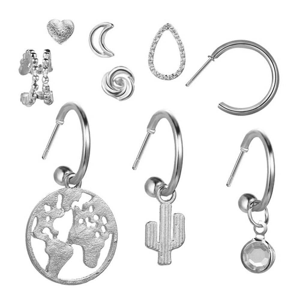 Mapa al por mayor Cactus Heart Alloy Ear Studs de 9 pares