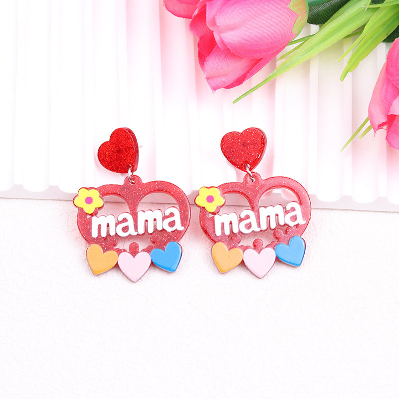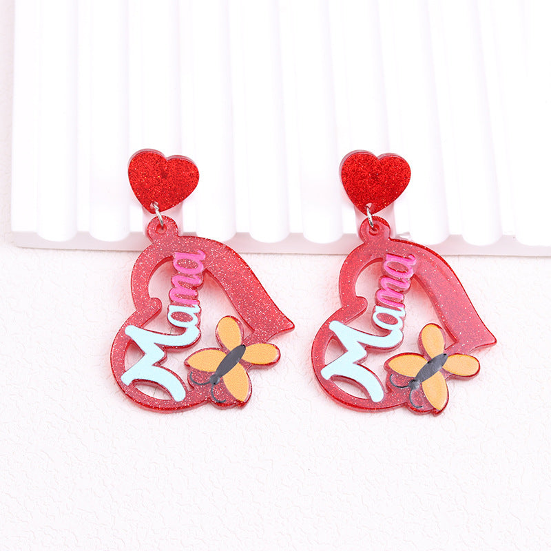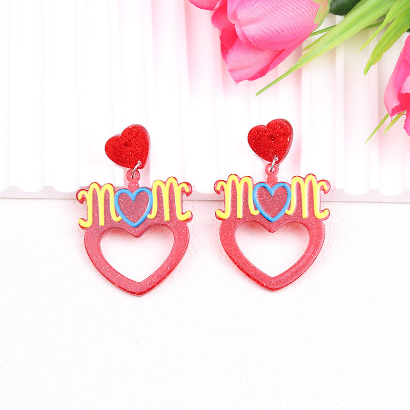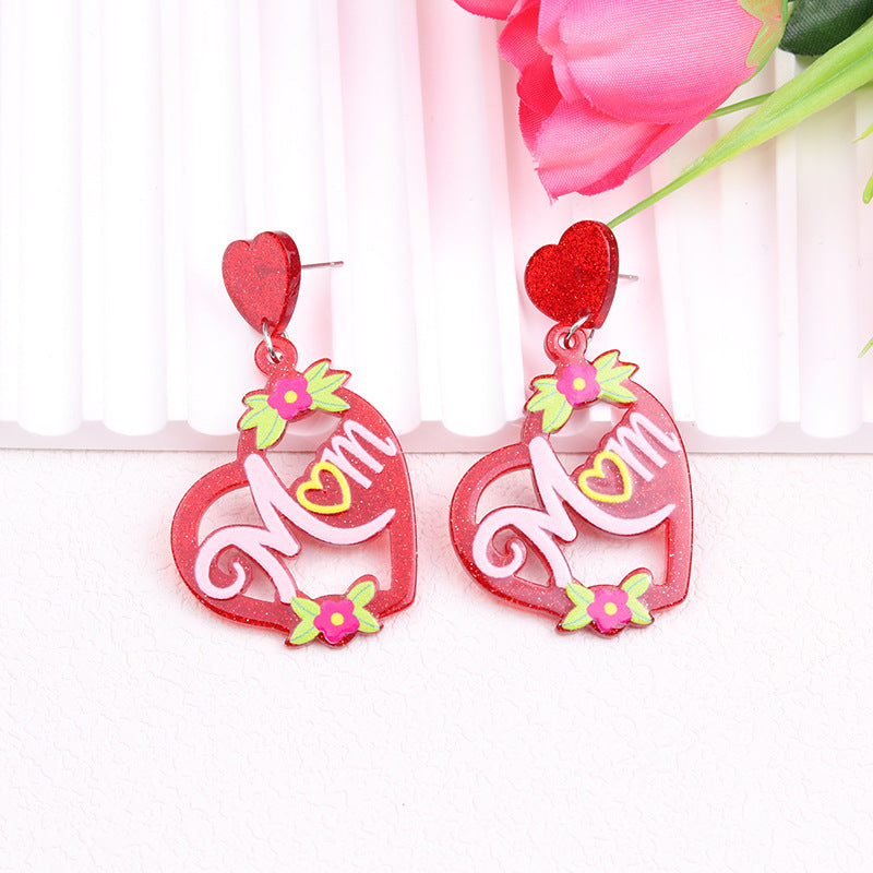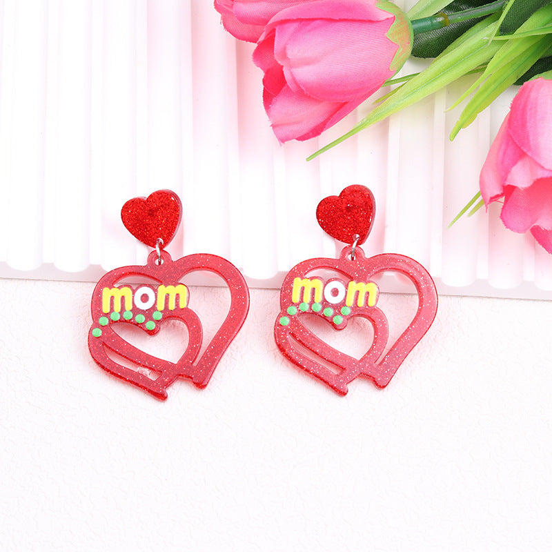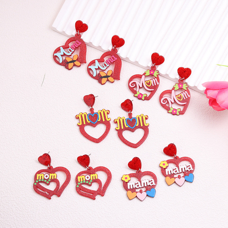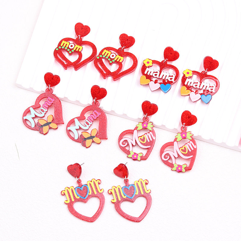 Wholesale Mother's Day Acrylic Hollow Red Heart Earrings