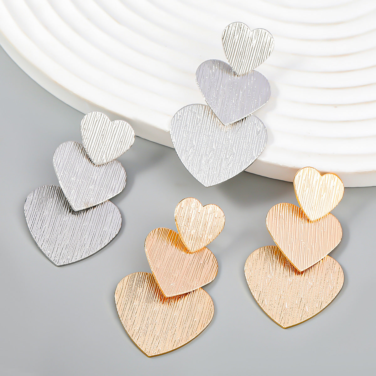 Pendientes de aleación de corazón de rayas verticales multicapa al por mayor