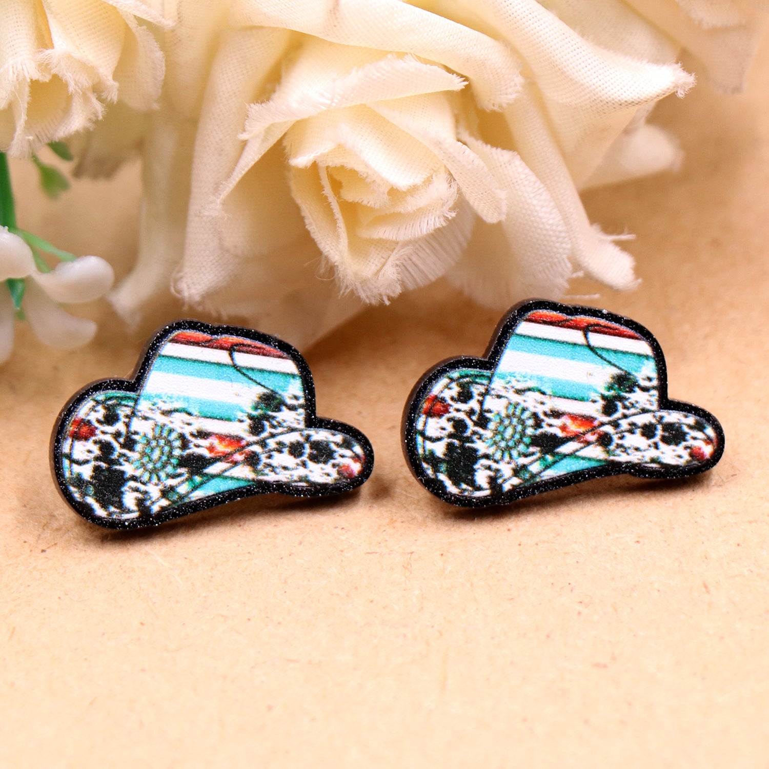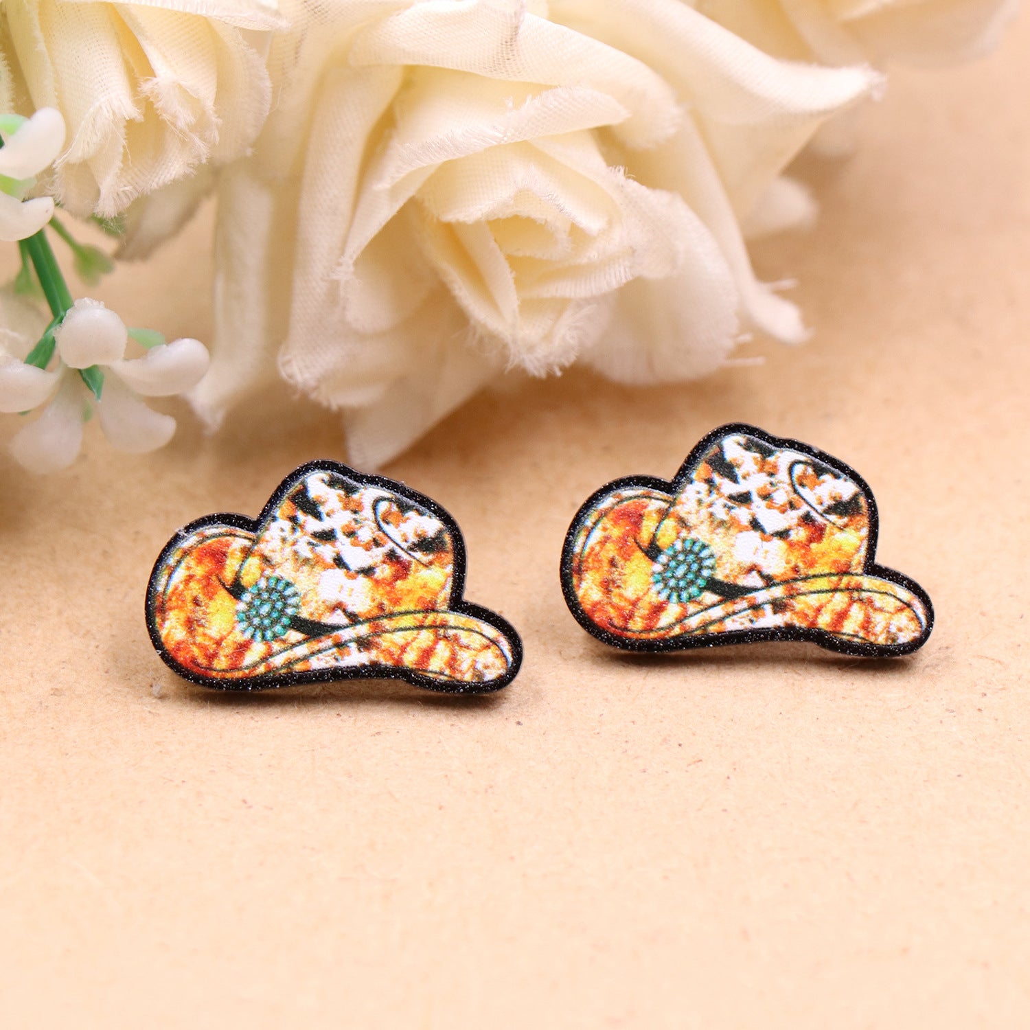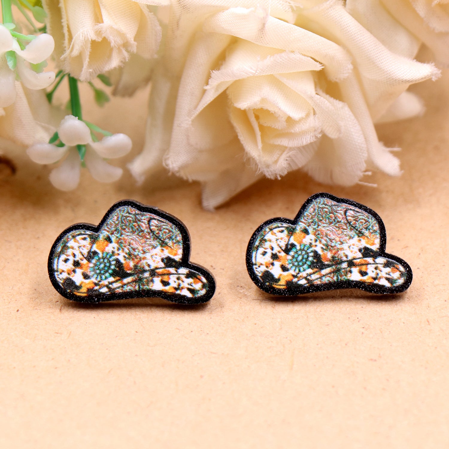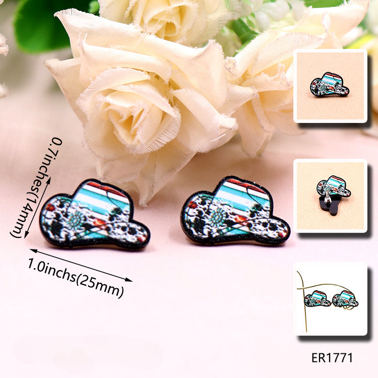 Wholesale of 10PCS/PACK Western Animal Pattern Denim Hat Acrylic Earrings