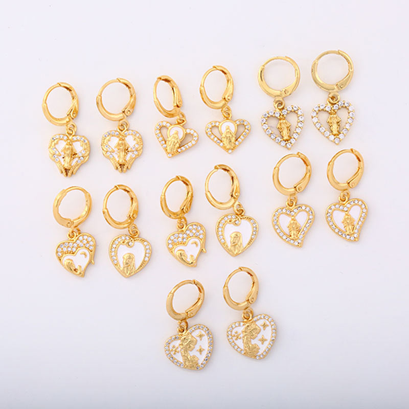 Gotas de petróleo al por mayor Love Heart Nuestra Señora Pendientes de cobre