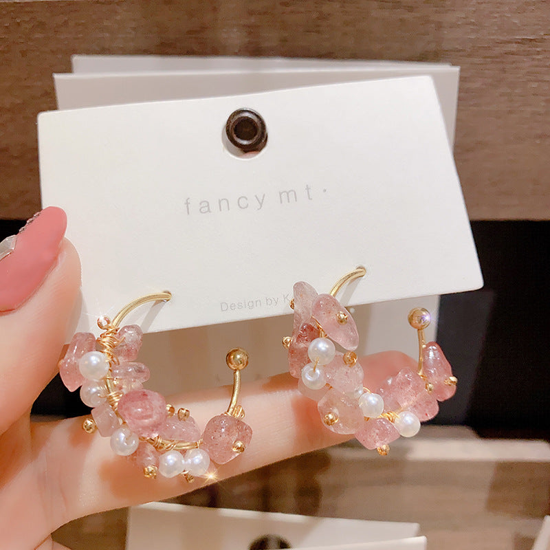 Pendientes de cobre con aguja de plata de piedra rosa al por mayor S925