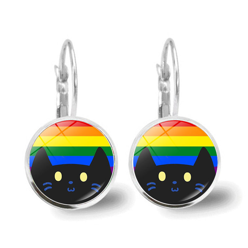 Pendientes de aleación de gato de arco iris al por mayor
