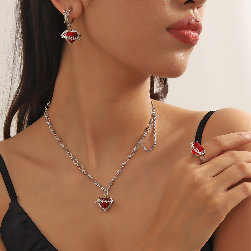 Wholesale Red Zircon Love Necklace Clavicle Chain