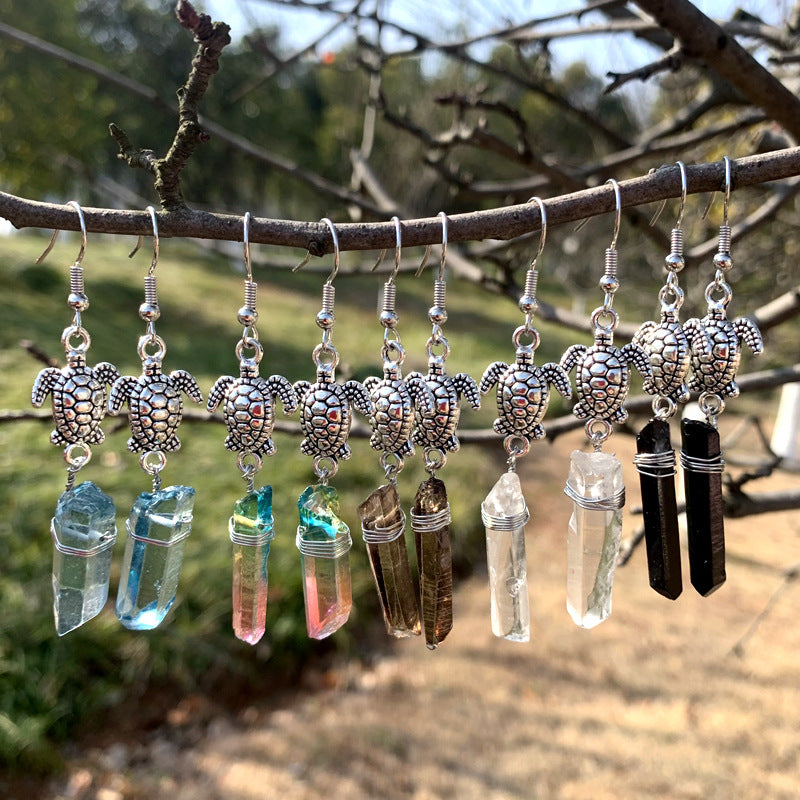 Pendientes de aleación de aleación de cristal natural de tortuga marina al por mayor