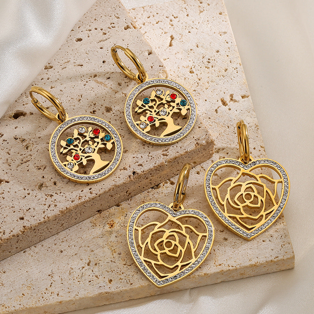 Titanio de titanio al por mayor Zircón Rose Corazón Pendientes Pendientes de árbol de la vida