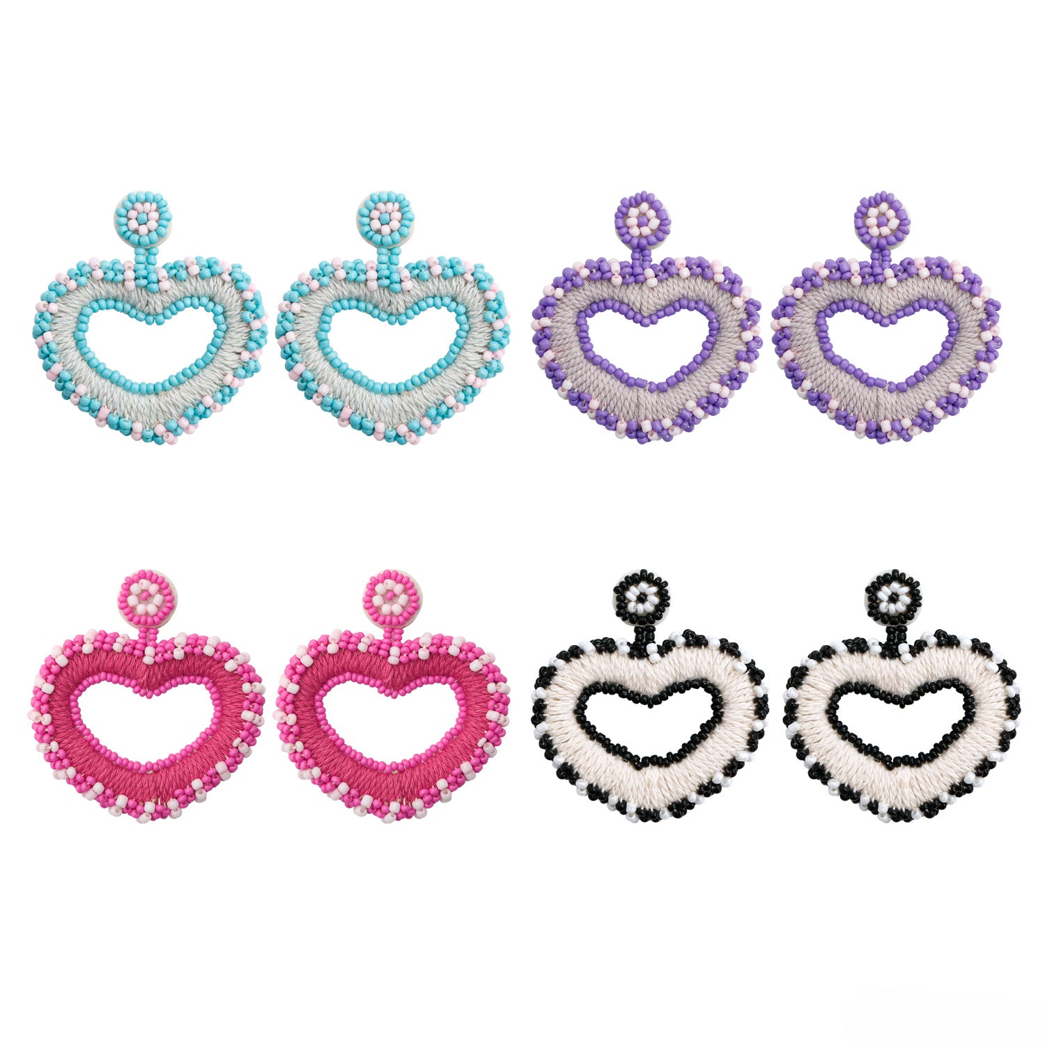 Wholesale Valentine's Day Handwoven Rice Beads Creative Bohemian Heart Shape Earrings