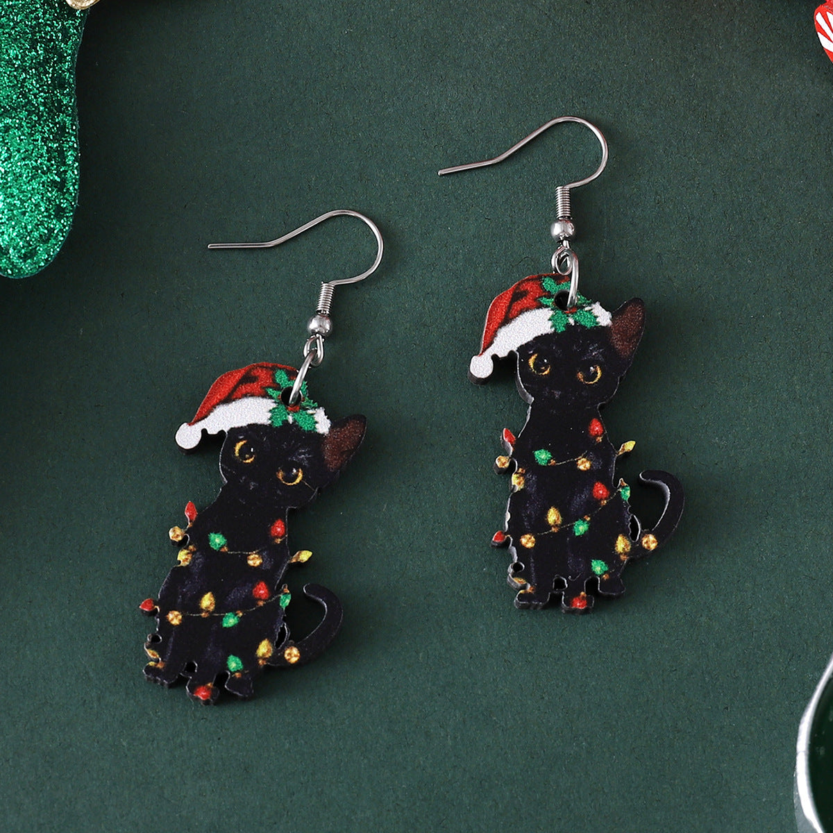 Wholesale Christmas pendant earrings wooden double-sided earrings