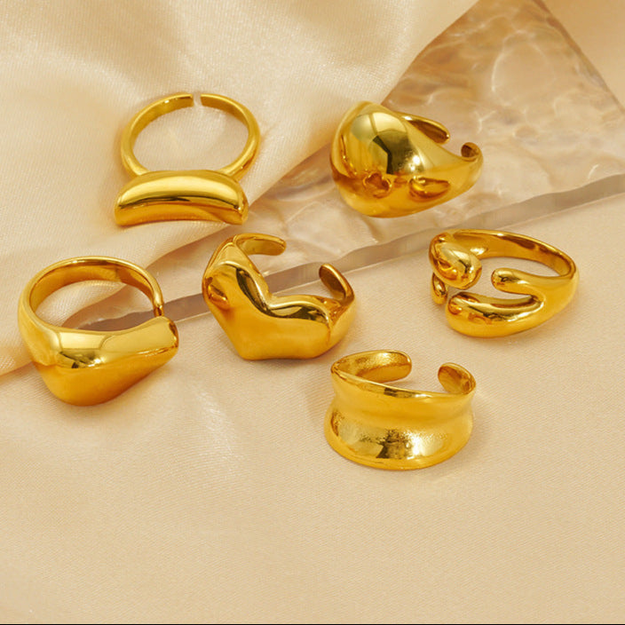 Wholesale Titanium steel ring for women, exaggerated love irregular smooth open ring for women
