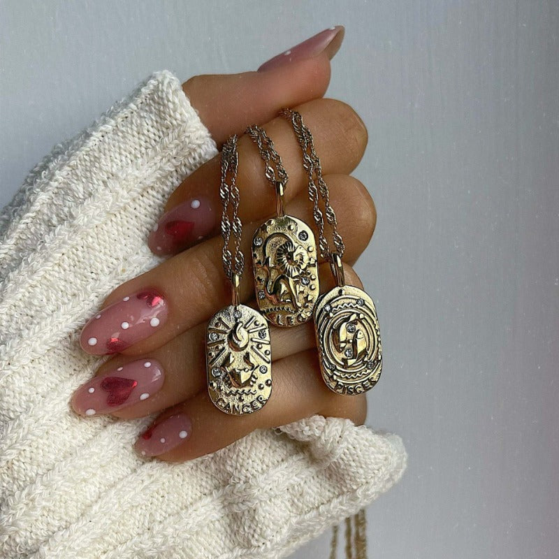 Wholesale Titanium Steel Three-dimensional Twelve Constellation Necklaces