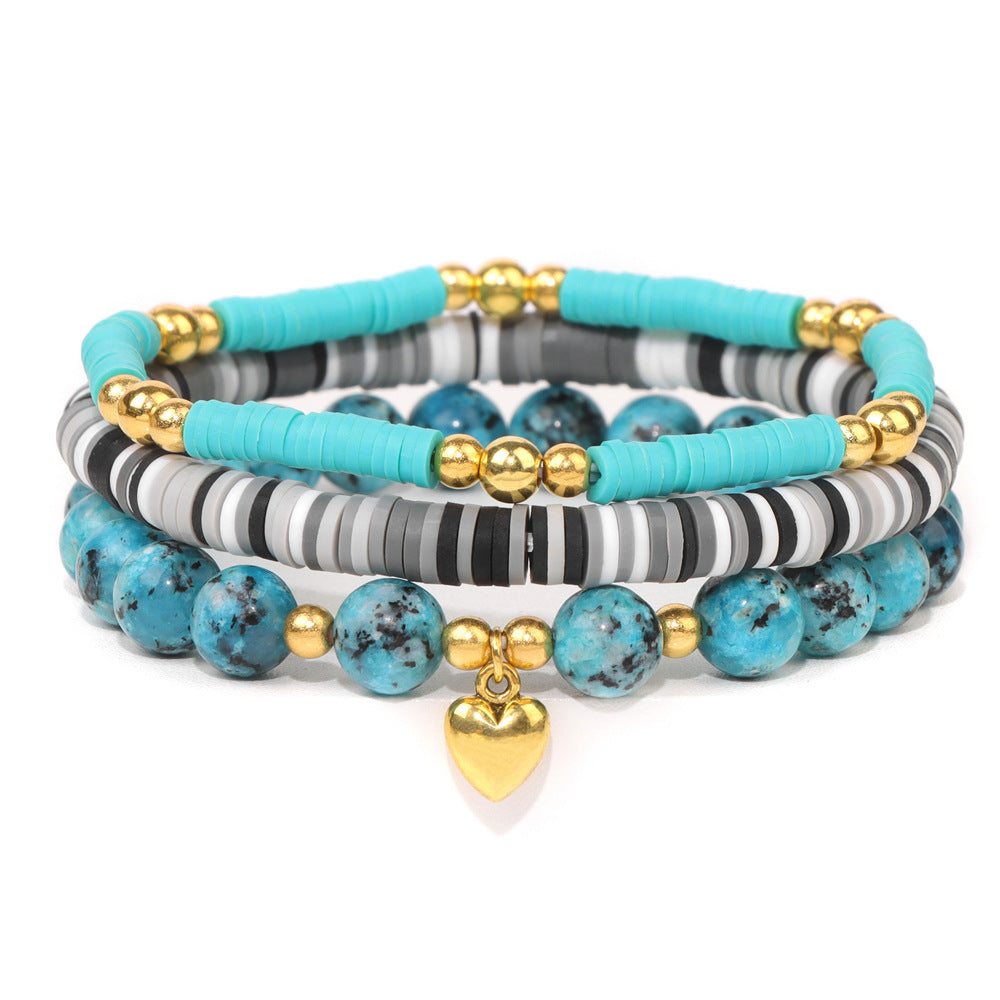 Peads de cerámica suave de piedra natural al por mayor brazalete de cordón elástico de tres piezas