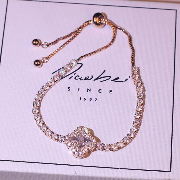 Wholesale Retro Style Zircon Set 18K Gold Plated Titanium Steel Bracelet