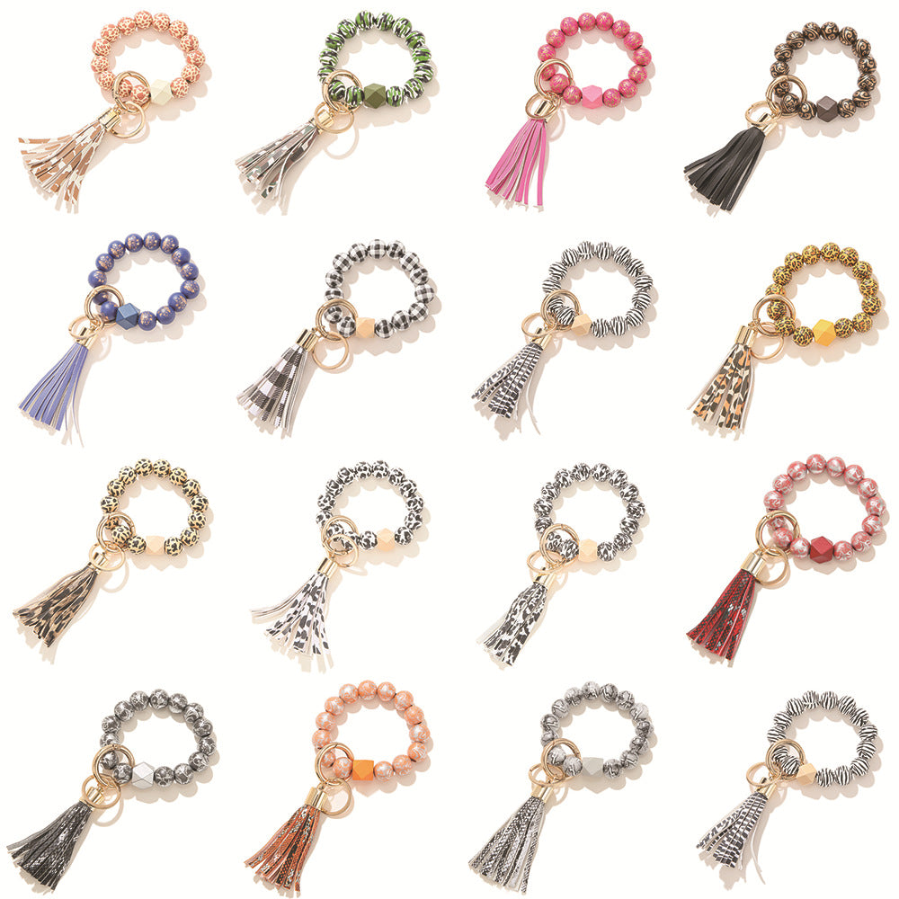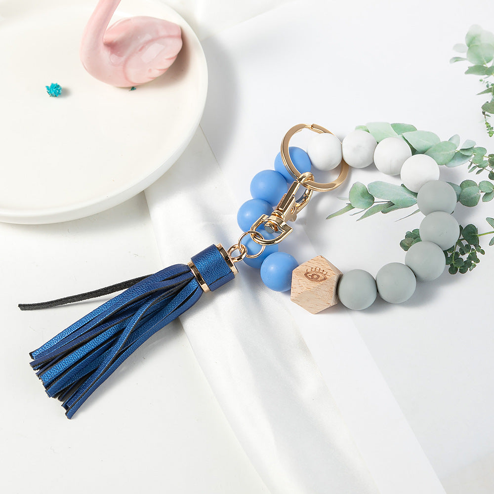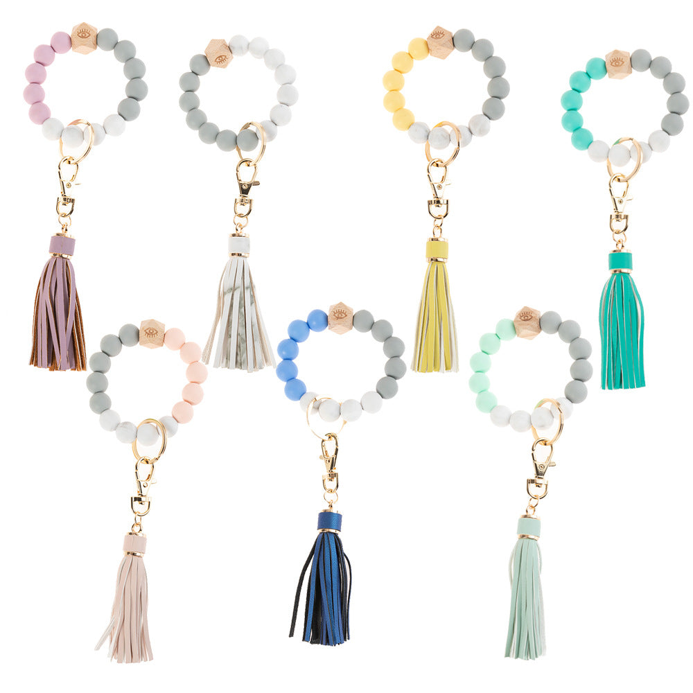 Llavero bohemio de la muñeca de la borla del cuero al por mayor del silicón