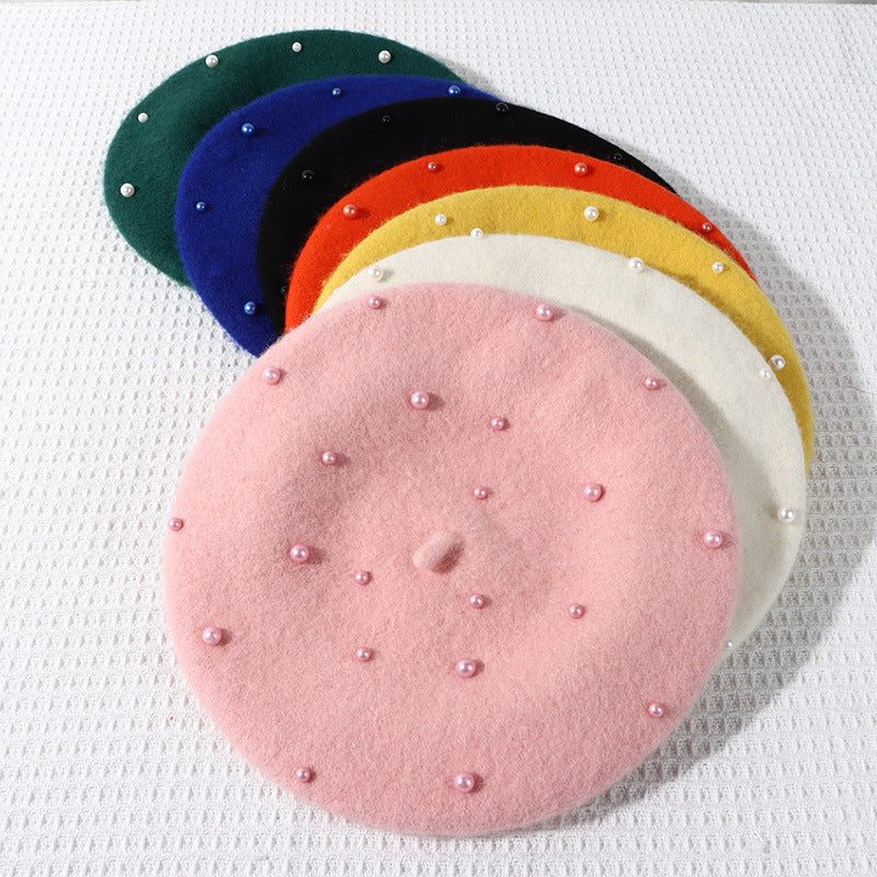 Wholesale Autumn and Winter Pearl Children's Beret Pearl Hat
