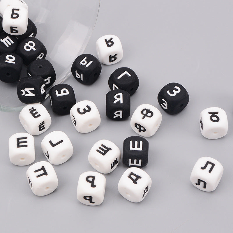 Letras rectangulares al por mayor 10pcs impresión de cuentas de silicona