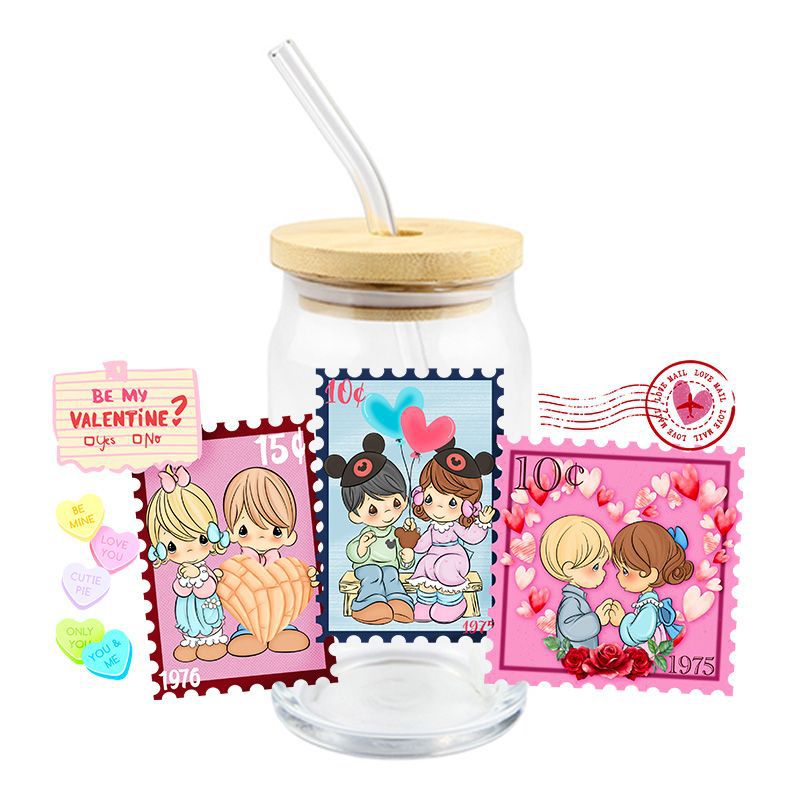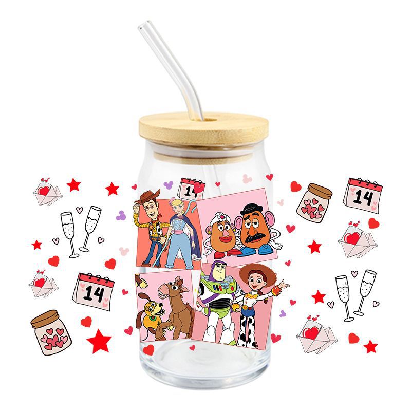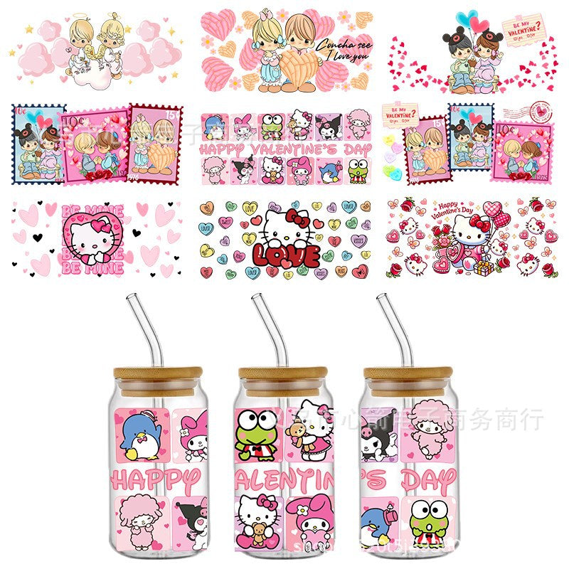 Wholesale 5pcs Cartoon Valentine' s Day 16oz Cup UV DTF Wraps OLY Exclusive