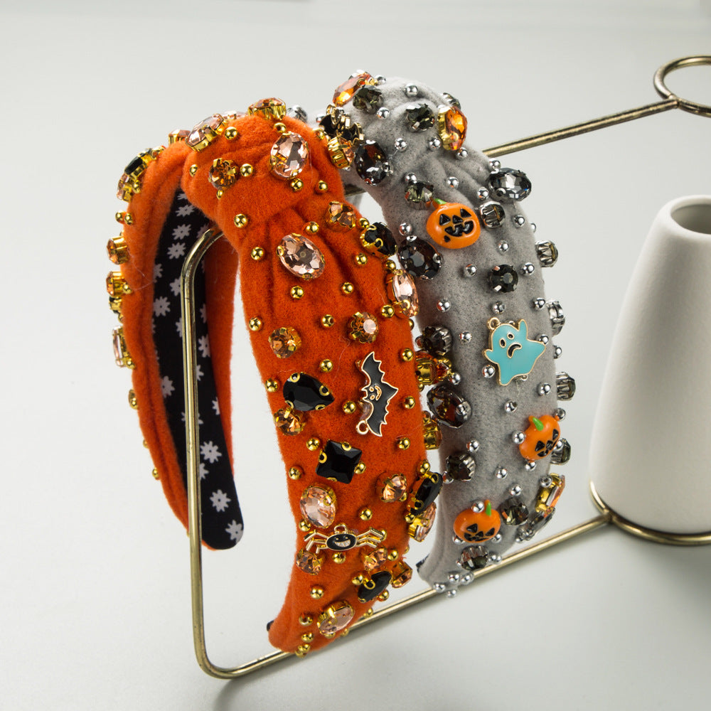 Wholesale Halloween Retro Nail Bead Ghost Pumpkin Flannel Glass Diamond Hair Hoop