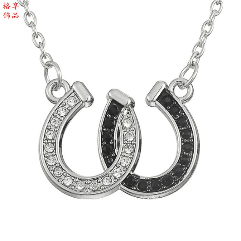 Wholesale Popular Halloween Black and White Diamond Double U Horseshoe Necklaces