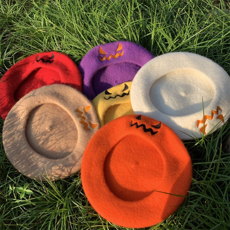 Wholesale Halloween Smiley Pumpkin Witch Wool Parent-child Beret Hat