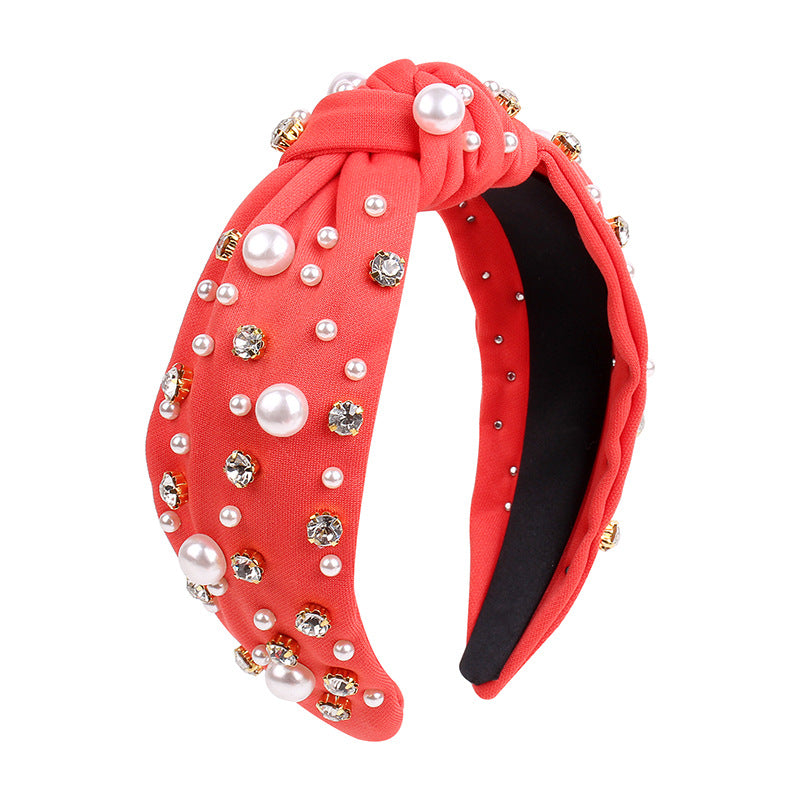 Wholesale New Pearl Rhinestone Geometric Fabric Headband