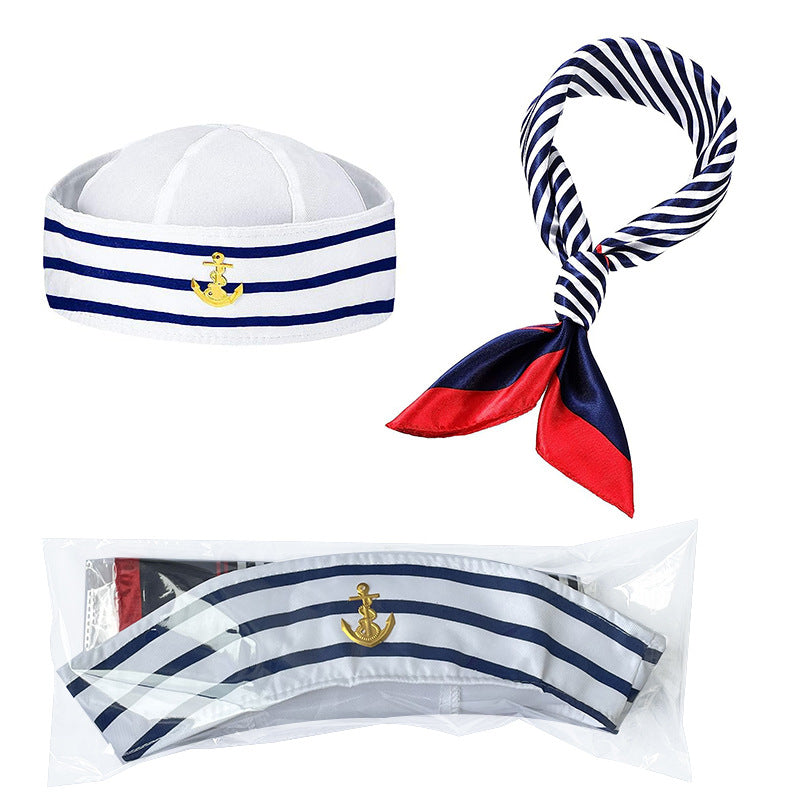 Wholesale Polyester Uniform Party Blue Striped Hat Set