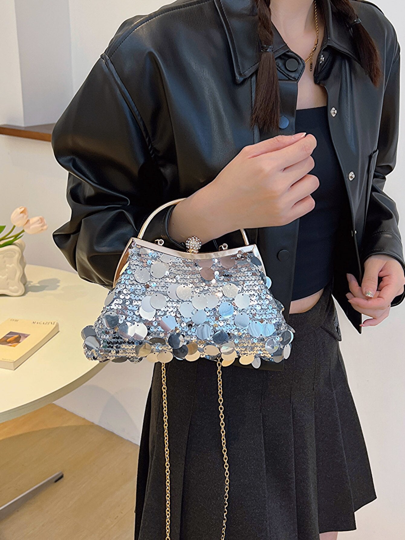 Wholesale Sequined Retro Shoulder Bag Crossbody Chain Evening Bag
