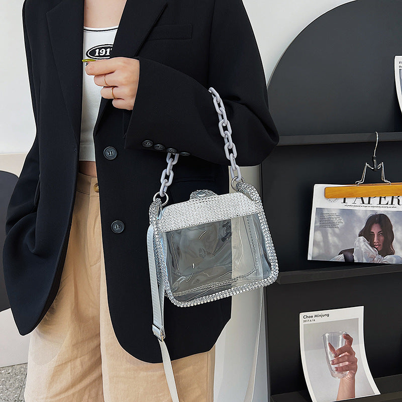 Bolsas de cadena transparentes al por mayor bolsos de hombro portátiles de PVC