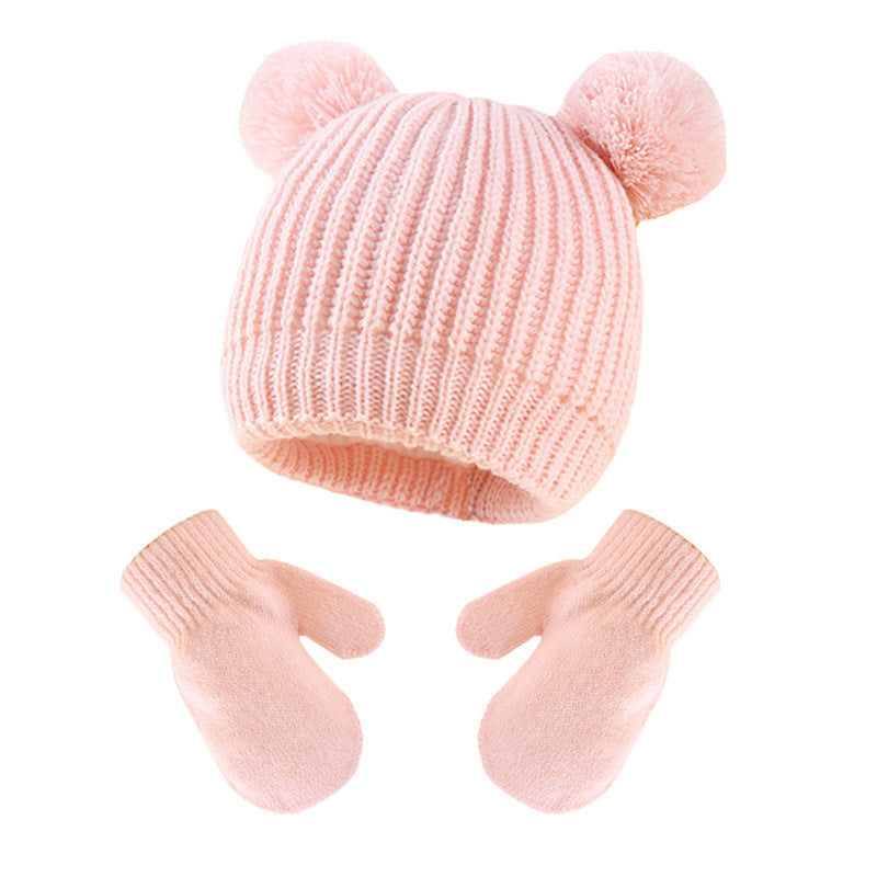 Wholesale Children's Hat Knitted Hat Set Cute Double Ball Wool Polyester Baby Hat 10pcs