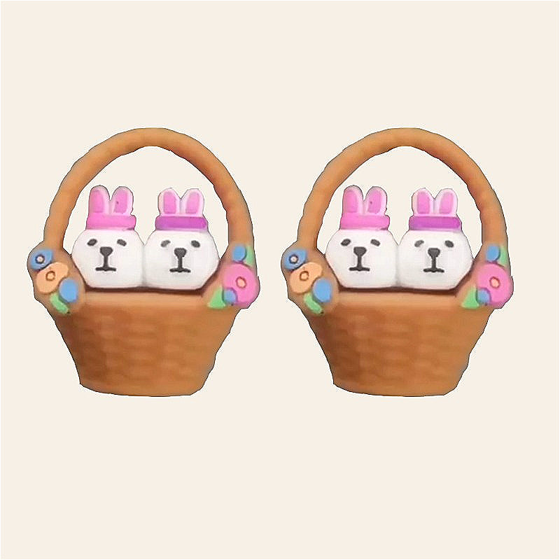 Wholesale 10pcs Cute and Adorable Little Rabbit in A Basket Silicone DIY Beads