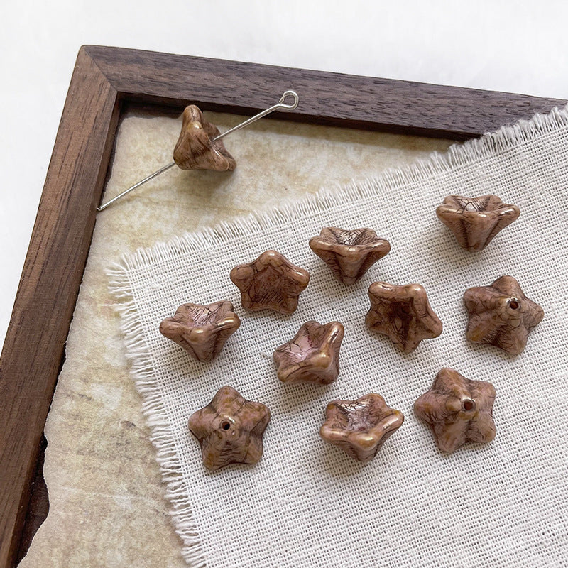 Wholesale 10pcs vintage mottled and dyed lotus mist beads on glass